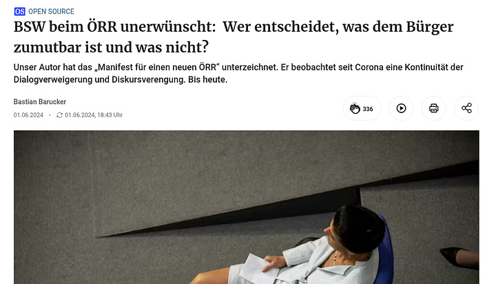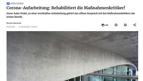 Anfang September 2024 erschien bei dem Online-Magazin Übermedien ein Artikel von David Will, der unter anderem beim Tagesspiegel und bei Die Zeit gearbeitet hat, über die Open-Source-Initiative der Berliner Zeitung. Der Artikel wirft der Initiative Einseitigkeit sowie das Fehlen jeglicher wissenschaftlicher Einordnung vor. Das ist im Prinzip derselbe Wortlaut, mit dem die Berliner Zeitung Frau Böllinger auch vorgeworfen hat. Der Autor stört sich daran, dass dort vor allem Maßnahmenkritiker zu Wort kommen und behauptet, dass bei den Corona-Beiträgen der Initiative «ein Text auch Fakten verdrehen, unbelegte Behauptungen aufstellen, vielsagend raunen, unzulässig pauschalisieren und Aussagen aus dem Kontext reißen darf.« Ähnliches könnte man übrigens ohne Probleme für fast die komplette Corona-Berichterstattung des Mainstreams behaupten.
