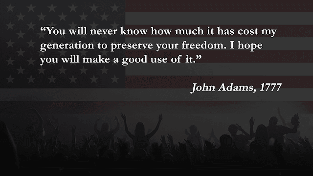 Großbritannien verlor 1776 seine Herrschaft über Amerika, weil Männer und Frauen mit Prinzipien trotz schrecklicher Risiken sich erhoben haben. Sie ließen die Kosten für die Fortbestand der Zwangsherrschaft so untragbar werden, dass Großbritannien zum Rückzug gezwungen wurde. Prinzipien haben Amerika die Freiheit von seinen Kolonialherren erkämpft. Sie wurde teuer und mit Blut erkauft in einem Krieg, der – gemessen am Anteil der Bevölkerung der für diese Freiheit sein Leben gab – der tödlichste in Amerikas Geschichte war. Freiheit wird nicht geschenkt. Sie wird von denen erkämpft, die bereit sind, den Preis für ihre Verteidigung auf sich zu nehmen.