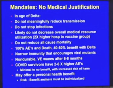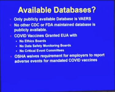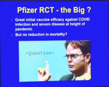 Diese drei Kontrollgruppen sind gerade für Notfallzulassungen üblich. Wir sind aus irgendeinem Grund absichtlich im Blindflug. OSHA (Occupational Safety and Health Administration = Behörde für Sicherheit und Gesundheit am Arbeitsplatz) hat gerade erklärt, dass sie die Pflicht zur Impfung aussetzen wird und hat alle Angestellten aufgefordert, unerwünschte Ereignisse der bisherigen COVID Impfungen zu melden. Als ethischer Arzt kann ich nichts auf dieser Folie rechtfertigen.