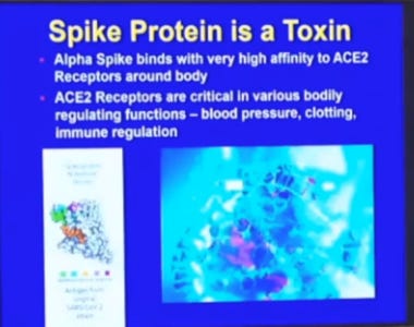 Das Problem ist das Alpha-Spike-Protein das alle Impfstoffe bilden. Es ist ein Toxin. An und für sich bindet es die h2 Rezeptoren in Ihrem Körper, die für die Regulierung des Blutdrucks sowie Blutgerinnung und das Immunsystem entscheidend sind. Die Spike-Proteine im Körper, die diese Rezeptoren angreifen, sind ein großes Problem.