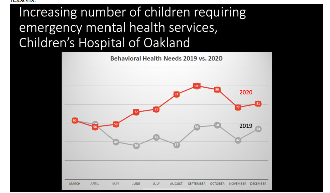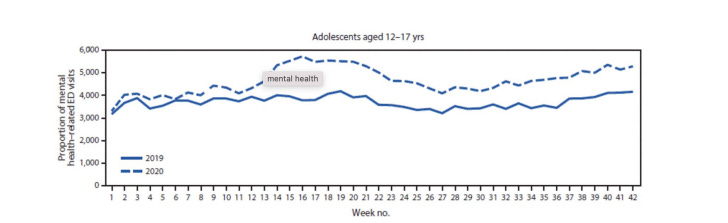 18. Leeb RT, Bitsko RH et al. Mental Health-Related Emergency Department Visits Among Children Aged <18 Years During the COVID-19 Pandemic – United States, January 1- October 17, 2020. MMWR Morb Mortal Wkly Rep 2020;69:6175-1680.