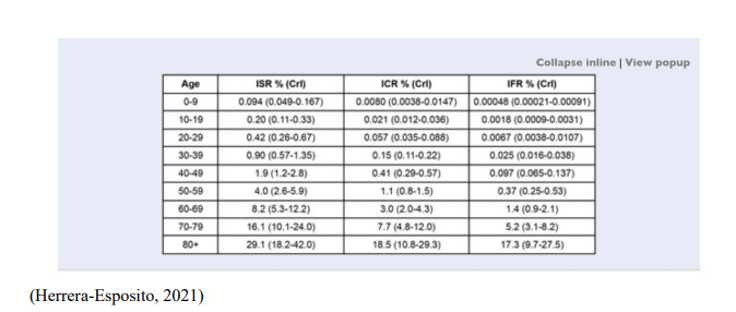 13. Herrera-Espoito D and de los Campos G. Age-specific rate of severe and critical SARS-CoV2 infections estimated with multi-country seroprevalence studies. MedRxiv 2021.07.29.21261282.