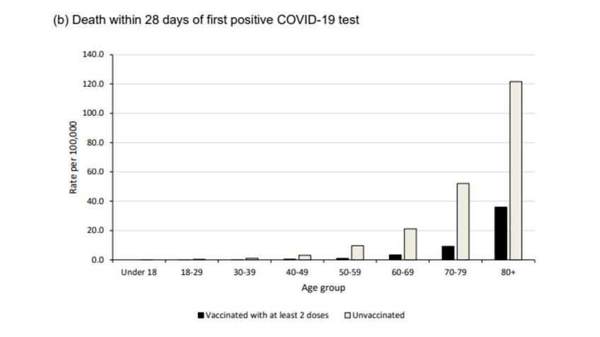 Da die Impfquoten bei Erwachsenen gestiegen sind, ist außerdem noch deutlicher geworden, wie resistent die meisten Kinder gegenüber schweren Erkrankungen und dem Tod durch COVID sind. In einer britischen Studie zur Wirksamkeit von Impfstoffen war die Wahrscheinlichkeit, an COVID zu sterben, bei ungeimpften Kindern geringer als bei geimpften Erwachsenen in jedem Alter: