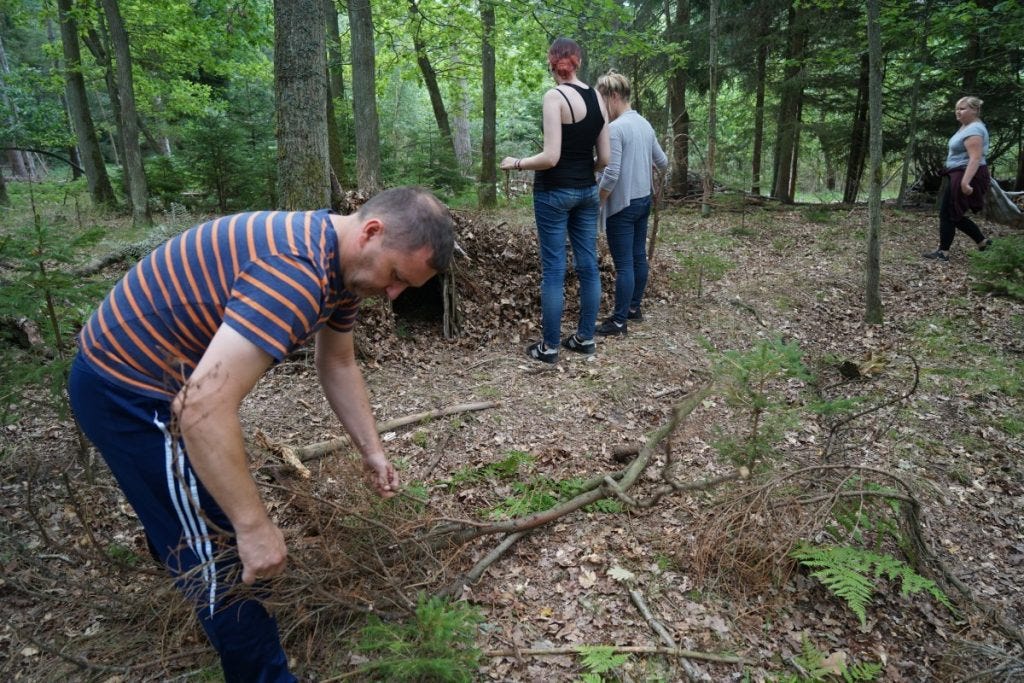 Nachdem ich eine kleine Einführung in die Wildnispädagogik und die dazugehörigen Themenfelder gebe, lade ich jede*n ein sich 10 Minuten Zeit zu nehmen, um herauszufinden, was sie am liebsten erleben und lernen wollen. Nach der Bedenkzeit versammeln wir uns im Kreis und jede*r kann seine Wünsche äußern. So entsteht ein Bild zur Interessenlage der Klasse. Ich nehme begeistert wahr, dass die Schüler*innen sehr viel lernen wollen und verstehen, dass ich ihr Dienstleister bin, der sie gerne in dem begleitet, was sie lernen wollen. Natürlich gibt es auch Inhalte, von denen sie nichts wissen, die ich dann einbringen werden. Nach der Mittagspause machen wir uns auf in den Wald und haben unseren ersten Nachmittag voller Naturverbindung. In der Abschlussrunde sagt eine Frau, dass das bereits das beste Projekt der Ausbildung ist, da sie mitbestimmen darf, was sie lernt. Das berührt mich und ich finde es schön und wichtig, dass sich Lernende als aktive Gestalter ihres Lernweges erleben. Das hat wahrscheinlich viel mit meinem Lernweg zu tun, der daraus bestand, dass ich mir sehr früh im Leben meine Ausbildung nach Interessenlage selber zusammenstellte. Die kommenden Wochen treffen wir uns jeweils 2 Tage im Wald und lernen diesen sehr gut kennen. Es wird an Wildkräutern gesnackt, Hütten werden gebaut, es wird gespielt und im Regen unter dem Tarp gerätselt und gelacht. Es gibt auch Tränen im Redekreis aufgrund eines Konflikts und das Erlebnis, dass im gemeinsamen Tun und nicht im Reden die Unterschiedlichkeit der Einzelnen ein Geschenk ist.