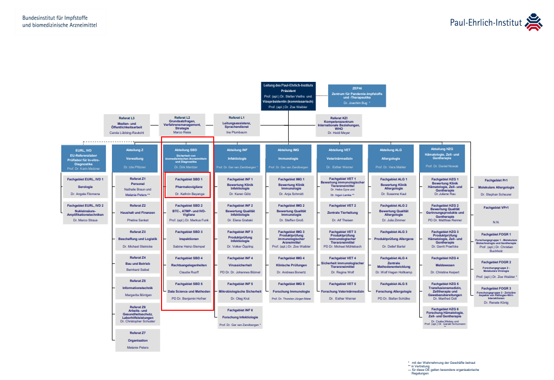 Diese Sachlage war der Ausgangspunkt meiner Bestrebungen, ähnliche Protokolle aus dem Paul-Ehrlich-Institut (PEI) zu erhalten. Daher forderte ich mittels des Informationsfreiheitsgesetzes zuerst die Protokolle des Fachgebiets „Pharmakovigilanz” (SBD 1) aus den Jahren 2019 bis 2025 an, das explizit für die Überwachung der Arzneimittelsicherheit zuständig ist. Es gehört zur Abteilung „Sicherheit von biomedizinischen Arzneimitteln und Diagnostika” (SBD).
