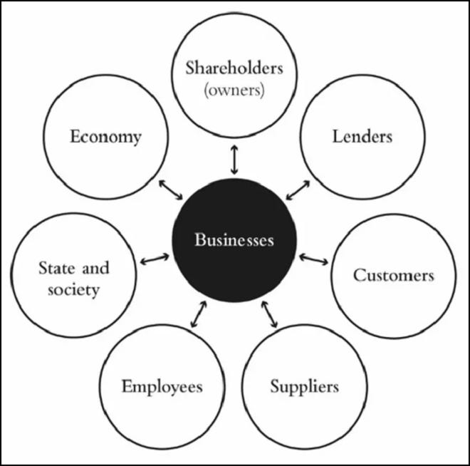 "Das wichtigste Merkmal des Stakeholder-Modells ist heute, dass die Einsätze in unserem System jetzt klarer global sind… Was früher in der nationalen Wirtschaftspolitik und bei individuellen Unternehmensentscheidungen als externe Effekte betrachtet wurde, muss nun in die Aktivitäten jeder Regierung, jedes Unternehmens, jeder Gemeinschaft und jedes Einzelnen einbezogen oder verinnerlicht werden. Der Planet ist… das Zentrum des globalen Wirtschaftssystems, und seine Gesundheit sollte bei den Entscheidungen aller anderen Beteiligten optimiert werden."